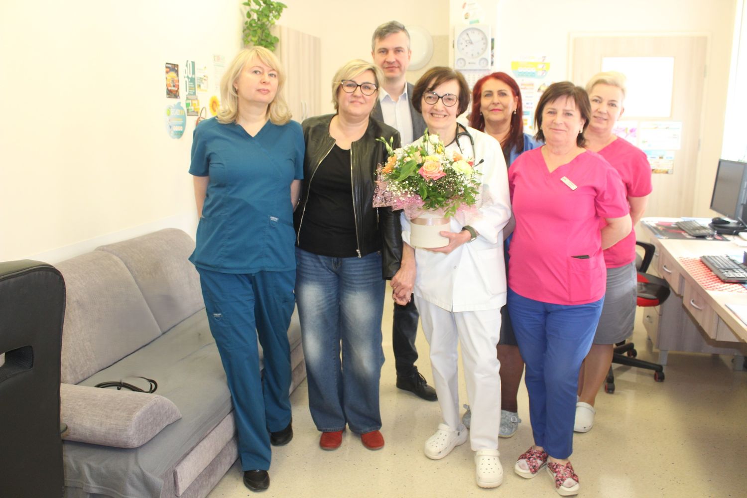 Pani Halina Szawan. Była przykładem zaangażowania i wsparcia, a dla zespołu – nie tylko przełożoną, ale przede wszystkim osobą, która potrafiła w pełni zaangażować się w życie placówki, dbając zarówno o pacjentów, jak i o każdego pracownika. Jej doświadczenie pozostanie wzorowaniem się na dla kolejnych pokoleń. Na emeryturze życzymy Pani Halinie dużo zdrowia, radości i pięknych chwil.