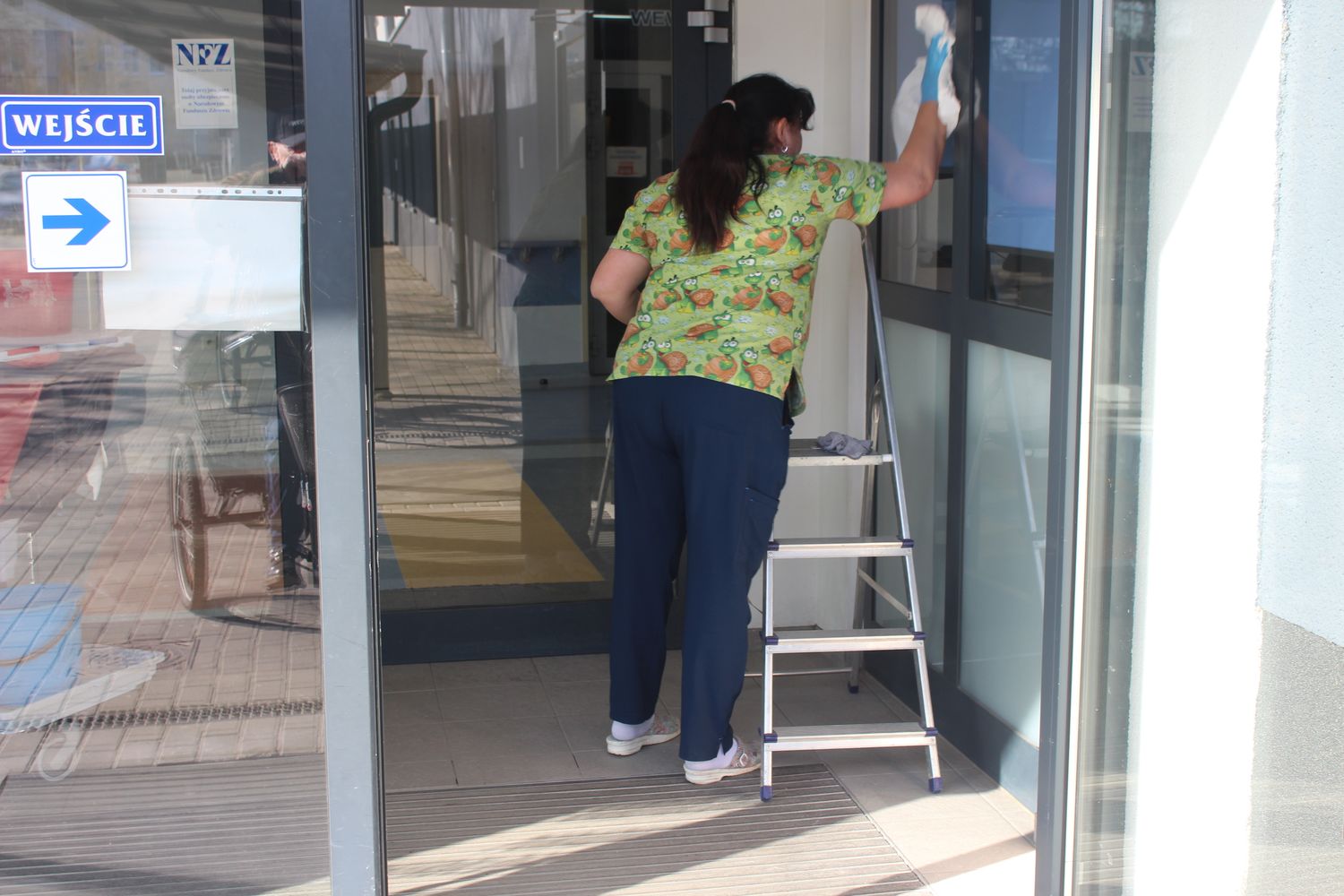 - Zima zostawiła po sobie ślady, ale wiosna powoli wszystko odmienia. – Zima zostawiła po sobie trochę śladu, ale nasza praca i wiosna wszystko odmieni – podkreśla pani Iza, pracownica Izby Przyjęć, odpowiedzialna za porządek i czystość. Razem z koleżankami przecieramy szyby i wykonujemy różne prace porządkowe, dbając, by było czysto i schludnie.
