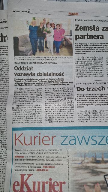 Dziś, 12.03.2026 r., w „Kurierze Szczecińskim” ukazał się artykuł o ponownym otwarciu Oddziału Wewnętrznego w Samodzielnym Publicznym Szpitalu Rejonowym w Nowogardzie. Zachęcamy do zapoznania się – artykuł dostępny jest w dzisiejszym wydaniu gazety oraz w internecie