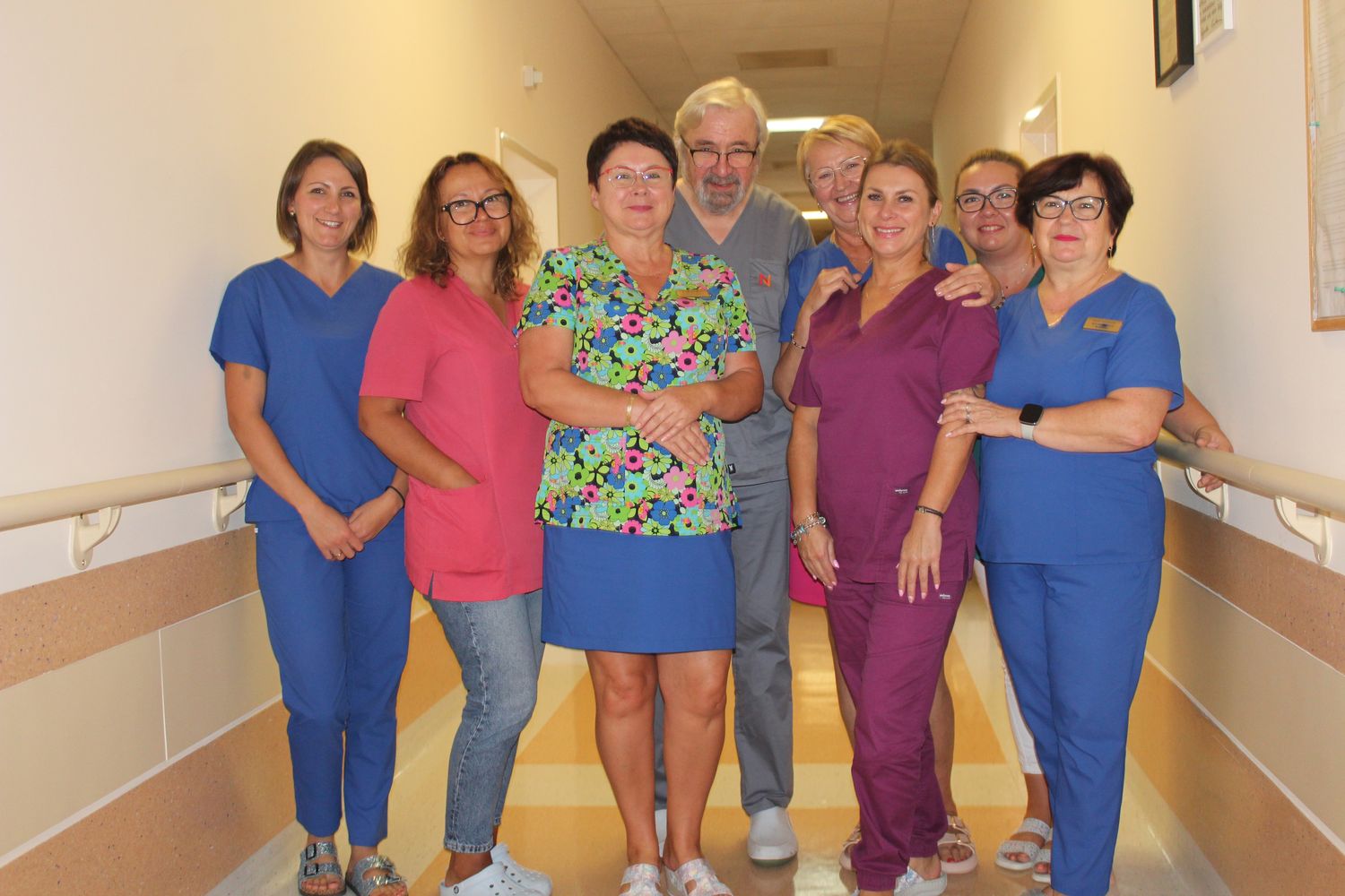 - Oddział Chirurgii w nowogardzkim szpitalu jest nowoczesny i wyposażony w bardzo dobry sprzęt, a jego wykwalifikowany personel, w tym lekarze-chirurdzy oraz pielęgniarki, zapewnia fachową opiekę pacjentom i pacjentkom. Wśród lekarzy pracujących na oddziale znajduje się m.in. dr n. med. Marek Kowalczyk, specjalista chirurgii ogólnej, który pełni funkcję ordynatora oddziału. Oddziałowa Elżbieta Bas – pielęgniarka o specjalizacji chirurgicznej. Pozostali lekarze to m.in. Michał Branecki, Ryszard Cieślak oraz lek. Natalia Karnitskaya. – informują Kazimierz Lembas-dyrektor Samodzielnego Publicznego Szpitala w Nowogardzie Jakub Kubiak- z-ca dyrektora ds. Administracyjno-Technicznych