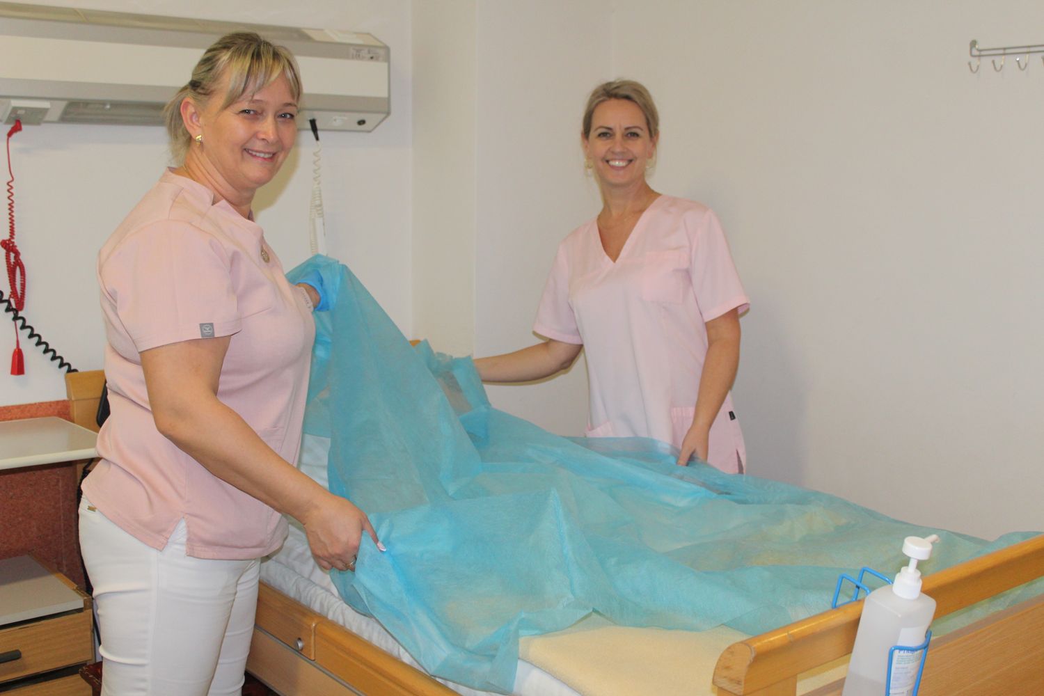 Dla pań salowych oddział to coś więcej niż miejsce pracy – to zawodowa przestrzeń i miejsce, żartobliwie nazywane przez nie „dzielnią”, kojarząca się z konkretną strefą ich obowiązków. Całość uzupełnia wysoki profesjonalizm zespołu lekarskiego, kierowanego przez ordynatora dr. n. med. Wojciecha Kałużyńskiego, specjalistę ginekologii i położnictwa, oraz siostry oddziałowej Charlotty Trokowicz-Sędłak. Do obowiązków pań salowych należy m.in. utrzymanie czystości i higieny na salach chorych, w łazienkach i pomieszczeniach wspólnych, dbałość o porządek oraz szybkie reagowanie na bieżące sytuacje na oddziale. To praca wymagająca zarówno fizycznie, jak i psychicznie, często wykonywana pod presją czasu.