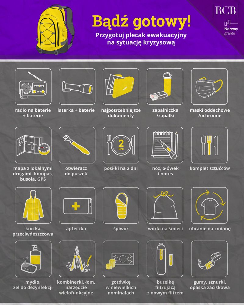 Samodzielny Publiczny Szpital Rejonowy w Nowogardzie zachęca pacjentów, mieszkańców Nowogardu do zapoznania się z ideą plecaka ewakuacyjnego (awaryjnego). To podstawowy element wyposażenia na wypadek sytuacji kryzysowych, takich jak klęska żywiołowa, awaria infrastruktury czy konieczność nagłej ewakuacji. Koncepcję tę promuje Rządowe Centrum Bezpieczeństwa (RCB), które informuje o zagrożeniach i sposobach reagowania na nie.
